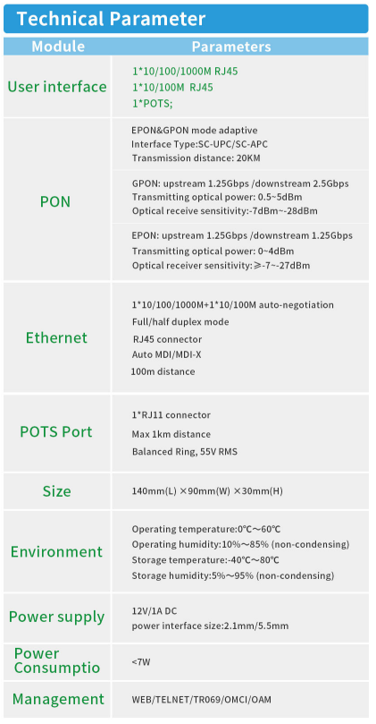 - In compliant with IEEE802.3ah &ITU-T G.984 standard